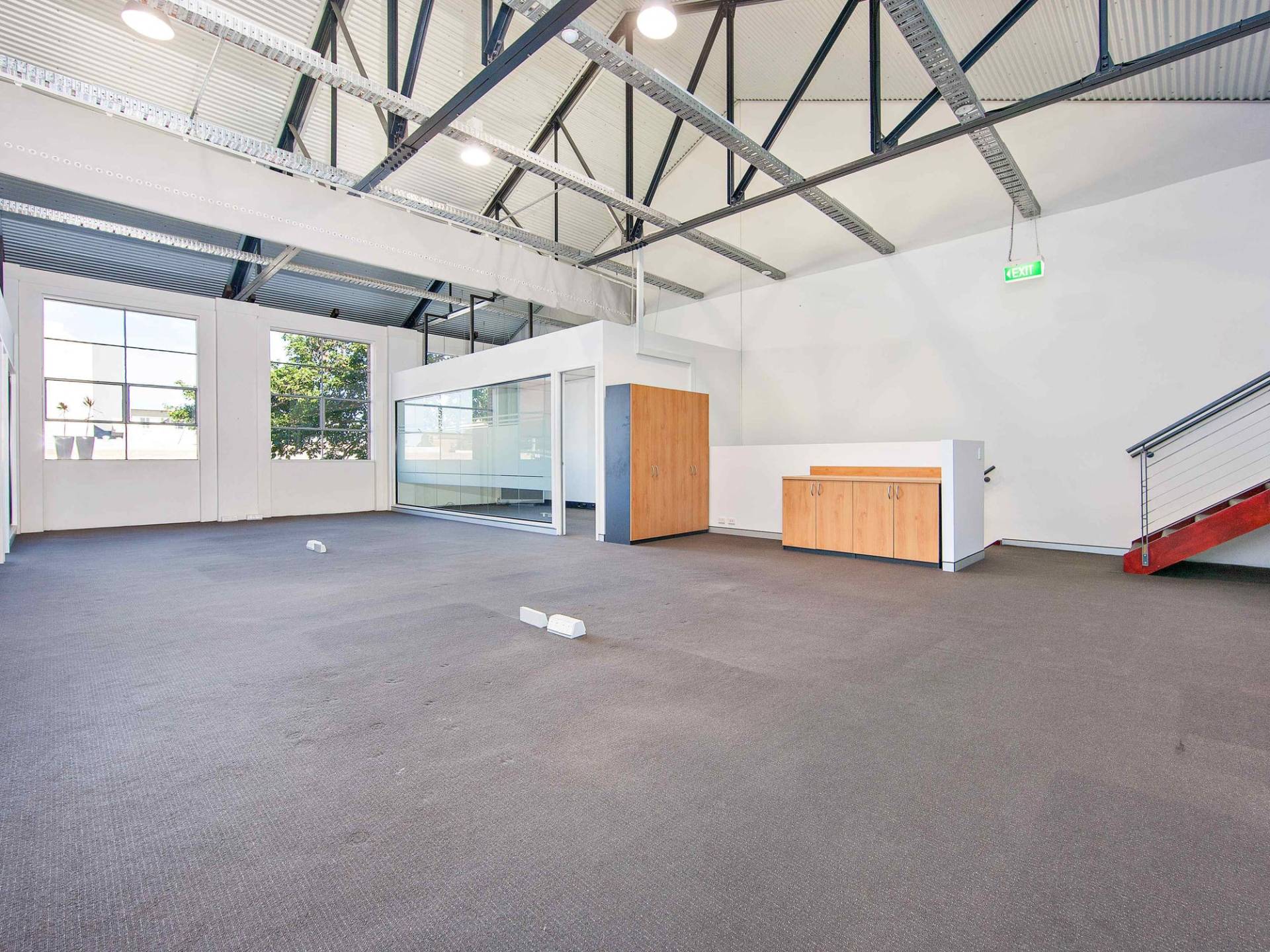 Huge industrial windows on both levels