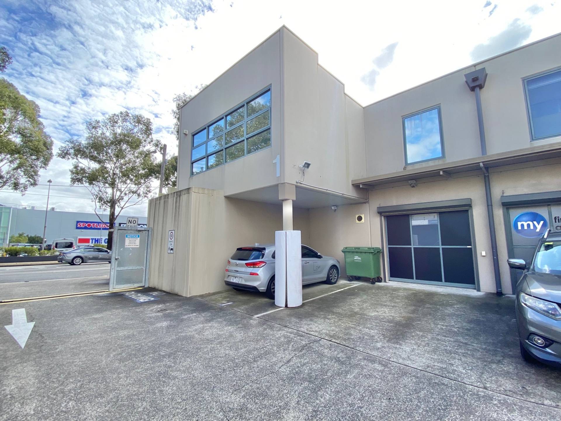 One car park on title- ability to park a second vehicles in front of the tilt glass door.